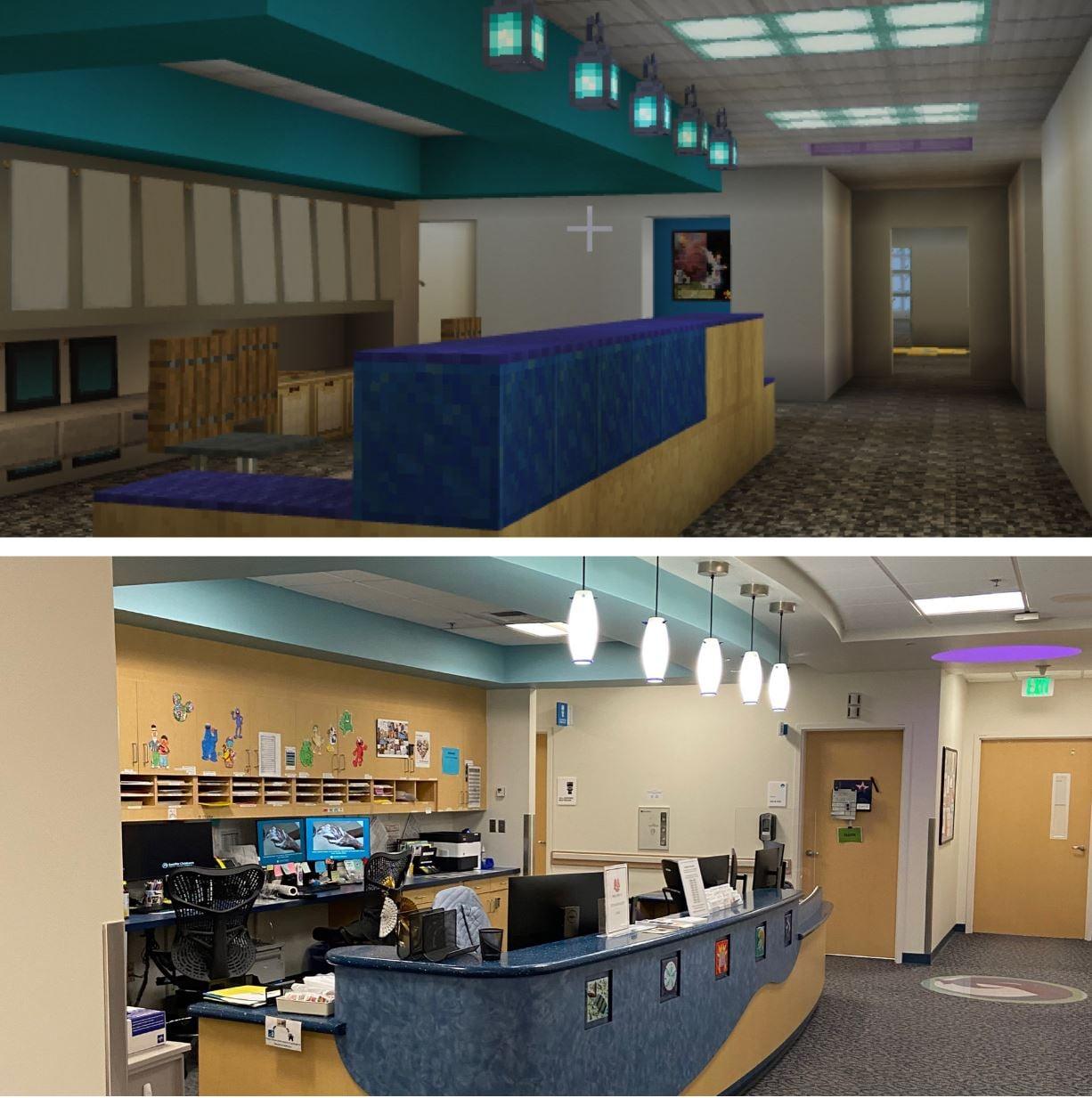 "Minecraft," according to a piece in the Children's newsletter On the Pulse, "is a video game that allows players to virtually explore a 3D world with different terrain and environments to accomplish various tasks or missions — a virtual LEGO world of sorts. Over the past 18 months, Dr. Ou has taken thousands of videos and photographs around the hospital and spent hundreds of hours during his personal time designing a Minecraft version of the hospital building."